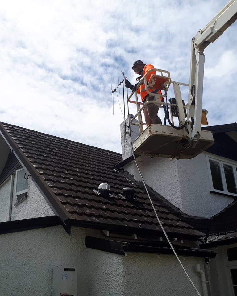 We undertake all work on roofs to the highest safety standards. Our team hold certifications in working at heights. In most cases we can clean your roof safely from ladders or harness with our specialist equipment. In some cases scaffold may be required we can provide this from start to finish.